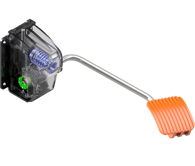 The Anthos series accelerator pedals are suspended pedals with a metal lever, specifically designed for use on agricultural tractors and off-road vehicles. Anthos pedals meet high standards of performance and quality, also thanks to the integrated architecture of the product, which places the electronic board directly inside the mechanical structure of the pedal.