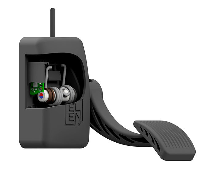 I pedali acceleratori compatti serie Logos integrano tutto il know how Elen sulla sensoristica programmabile in un prodotto concepito per veicoli da lavoro a motore elettrico o a motore termico: il segnale di uscita e la soglia di scatto IVS sono ottenuti grazie al firmware della scheda, a partire unicamente dalla rotazione del perno della leva.